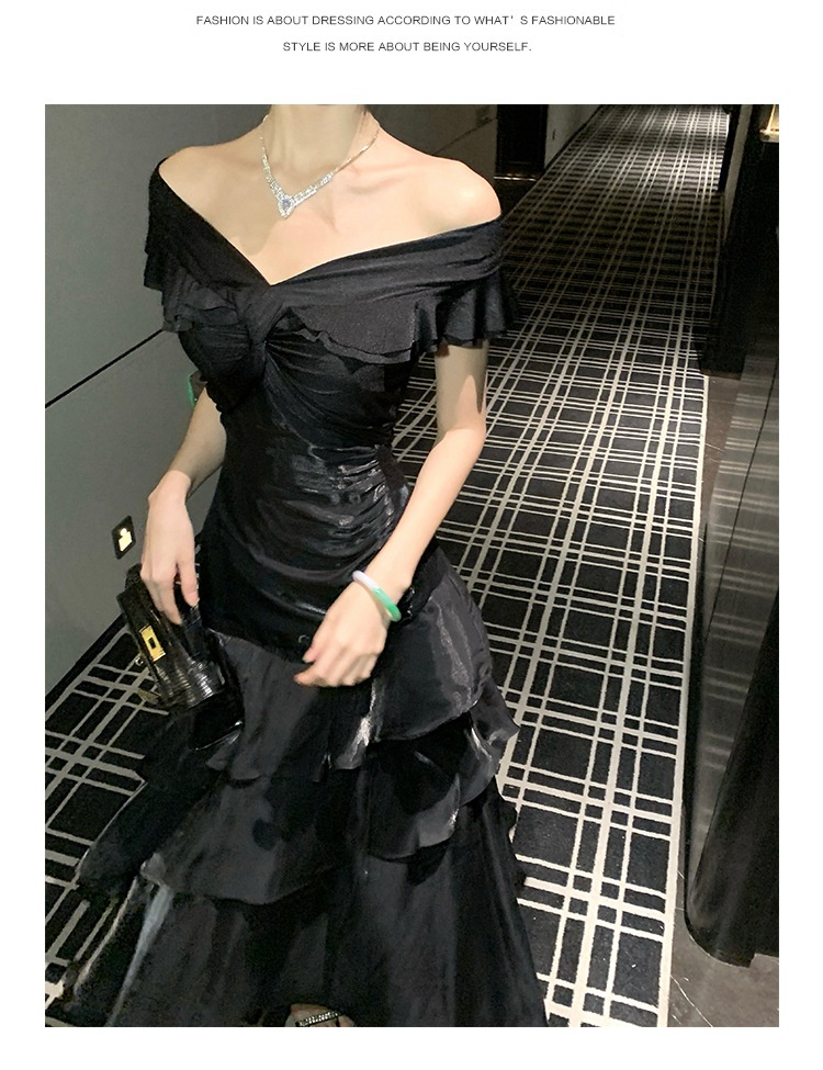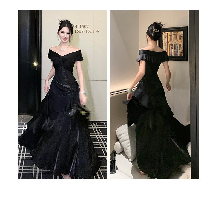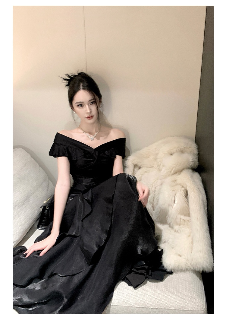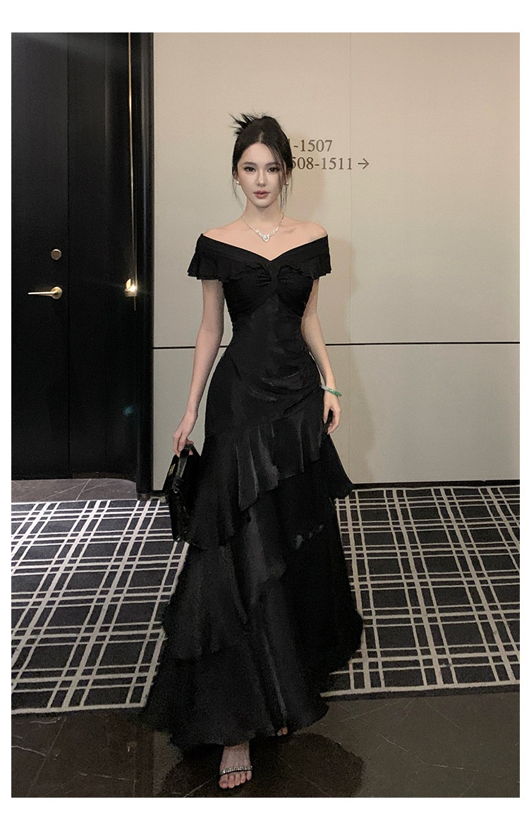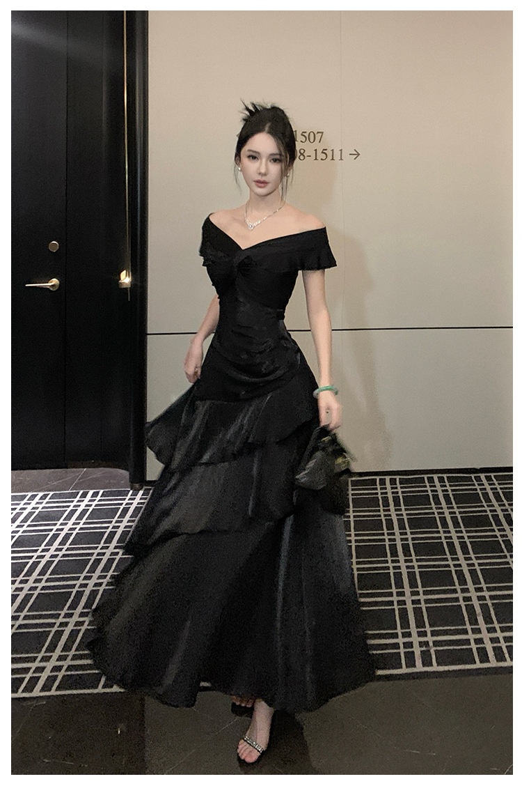 French-style Black Off-shoulder Luxury Dress