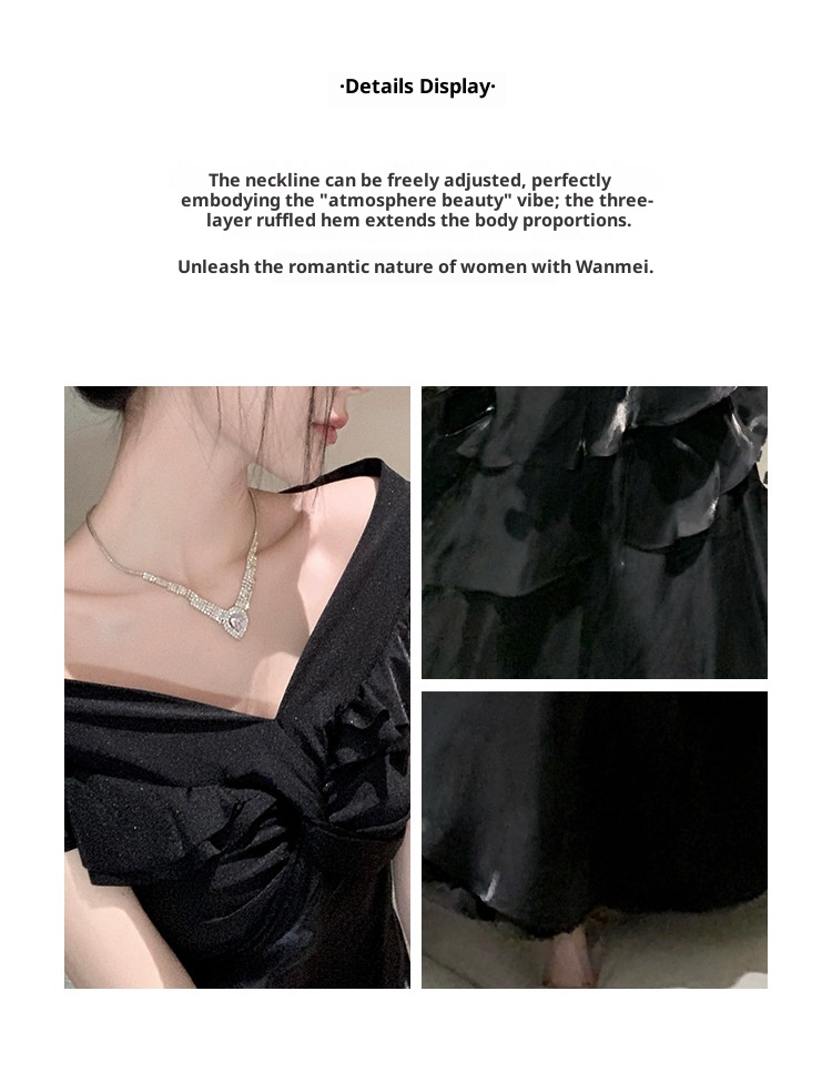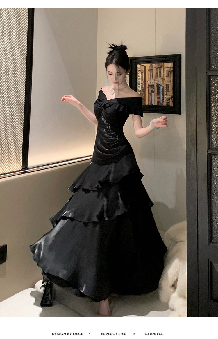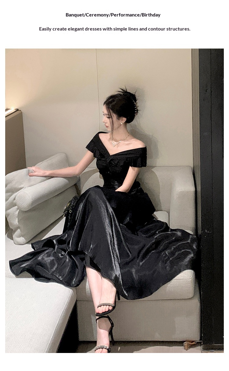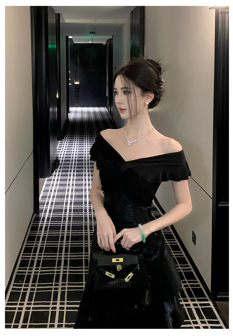 French-style Black Off-shoulder Luxury Dress
