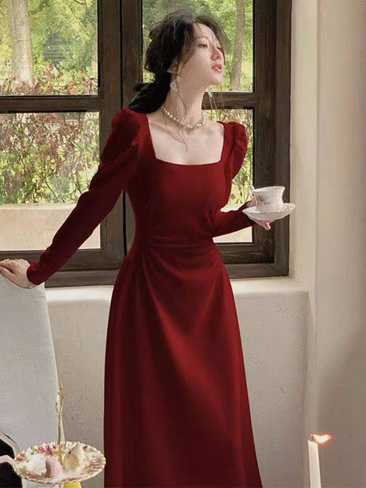 Red Longsleeve Dress Women's Formal GownRed SkirtMaxi